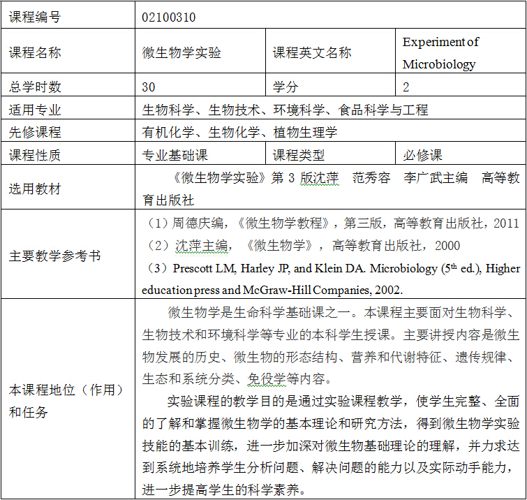 微生物实验课单独考核。考核着重强调学生的实验过程、基本操作及综合分析问题的能力,由实验态度(出勤、预习、准备实验、值日)、平时实验操作、实验报告、实验考试(口试、笔试、操作)等项综合评定,实现实验教学全过程的质量监控。