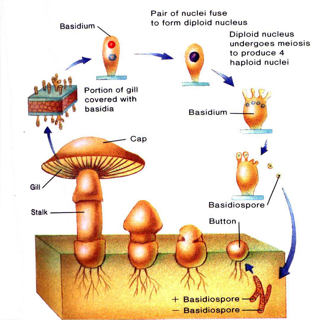 蕈菌发育过程中,菌丝分化的五个阶段: