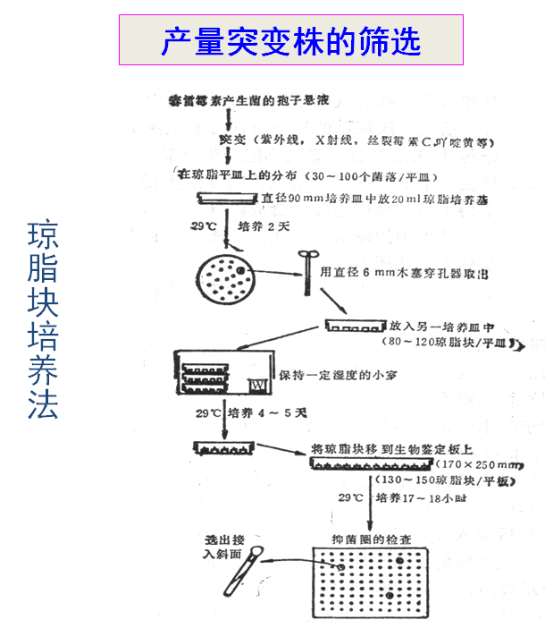 生产中选育:生产中菌自发突变—及时选育出所需性状正突变株。
