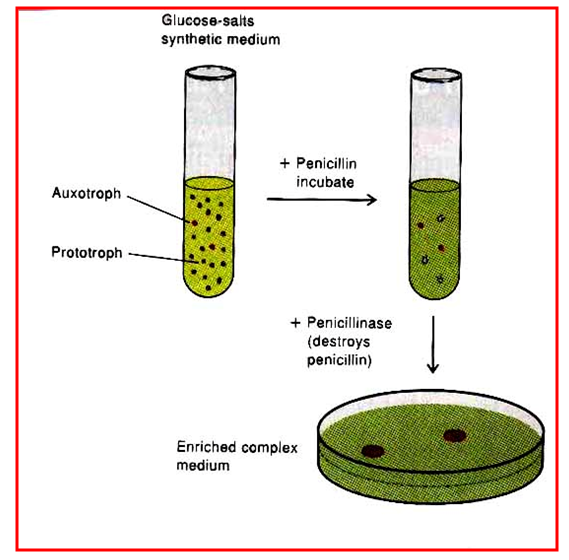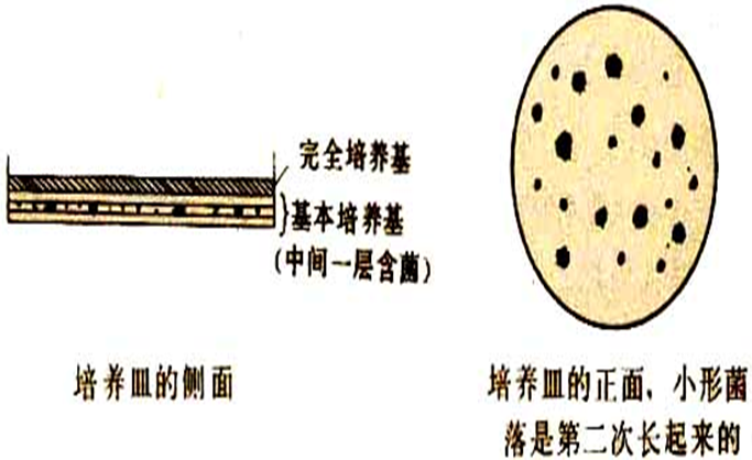 原理:青霉素、制霉菌素等抗生素作用于正常生长着的野生型微生物细胞,而对处于休止态的营养缺陷型细胞无作用。