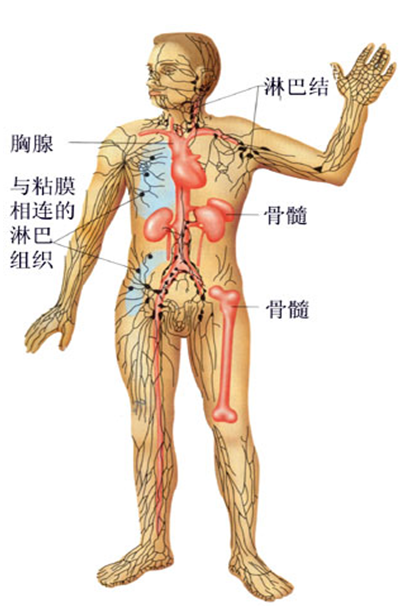 自然杀伤细胞(NK细胞):NK细胞属于淋巴细胞,主要分布于外周血和脾脏;具有不须事先致敏,不须其它辅助细胞或分子的参与而直接杀伤靶细胞的功能; NK细胞通过释放穿孔素(perforin)和颗粒酶造成靶细胞死亡,也可通过释放肿瘤坏死因子(TNF)杀伤靶细胞。
