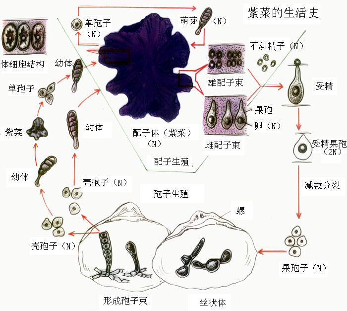 (1)甘紫菜(Porphyra tenera Kjellm.):为著名的食用植物;