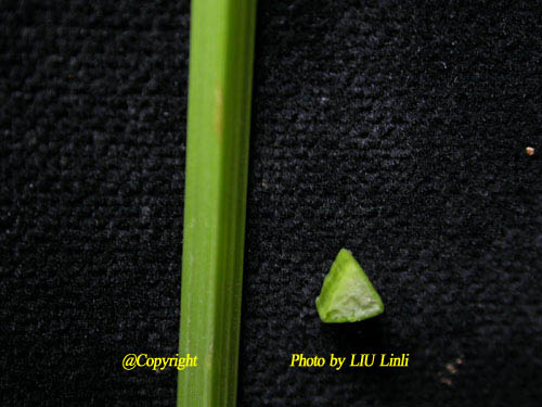 ❀荸荠 Eleocharis tuberosa (Roxb) Roem et Schult:多年生草本。地下有匍匐茎,先端膨大为球茎,地上茎丛生直立,管状,有节,节上生膜状退化叶。