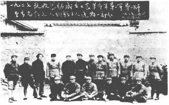 ★参加湘赣边界秋收起义的部分人员1937年在延安合影。后排左三为毛泽东。