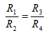这就是电桥平衡的条件,即相邻两臂电阻的比值相等。
