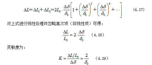 灵敏度定义为单位气隙厚度变化引起的电感量相对变化,即: