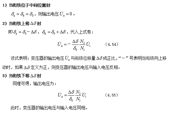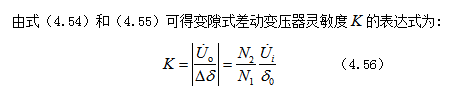 在忽略铁损、漏感并要求变压器的次级开路条件下,变隙式差动变压器的等效电路如图4.11(b)所示。