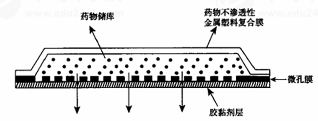 3.储库型:控释膜(高分子材料)包裹药物储库,从而控制药物的释放速率。