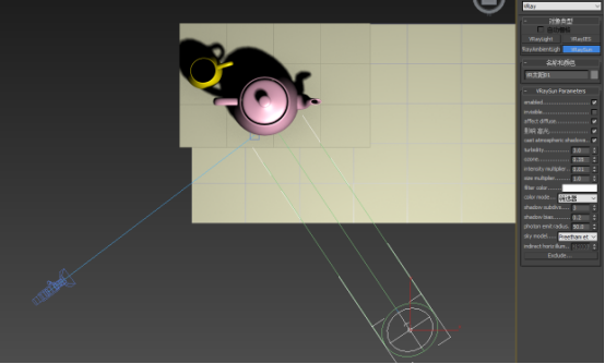 10. 进入vray sun系统设置面板,设置阳光的强度为0.01。