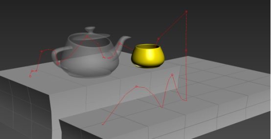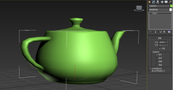 1.创建场景及角色,为了后期制作茶壶动画的灵活性,我们在创建茶壶时将茶壶每个部件进行单独创建成多边形物体,然后将部件使用父子链接到壶体上,使成为壶体的子对象。
