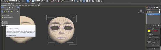 1. 将原始头部复制一个,重命名为“嘴左上”,选择“嘴左上”头部,进入顶底层级,点击石墨工具下多边形建模工具,选择对称工具。
