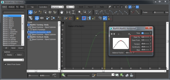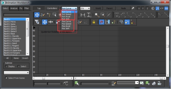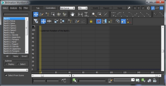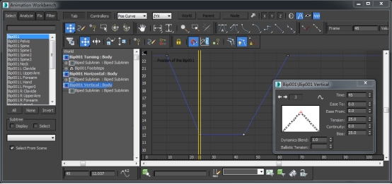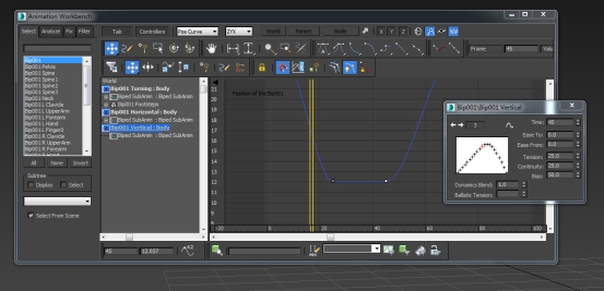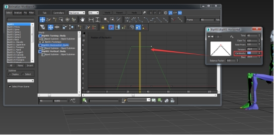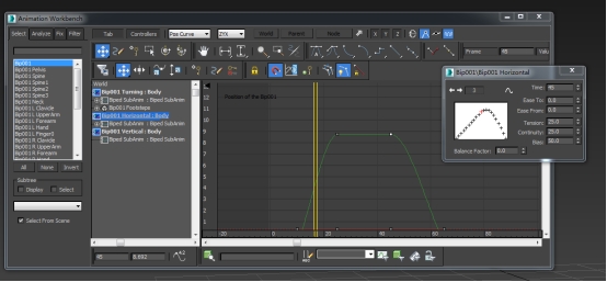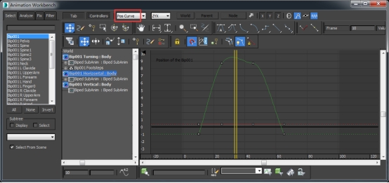 使用Biped自带的曲线编辑器,Max自带的曲线编辑器也是可以的,但是,自带的曲线编辑器对Bioed的支持并不是特别好,因为Biped是以插件的形式并入进来的。Biped自带的曲线编辑器可以完美匹配Biped。