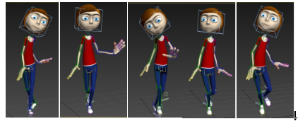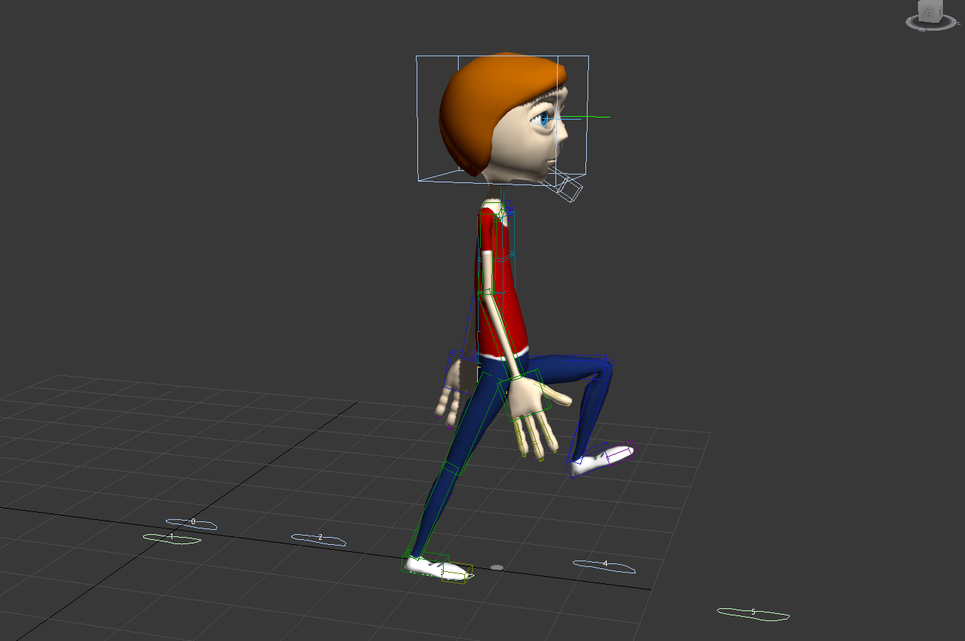 7. 根据我们对角色动作的需要,可以调整设置任何足迹动画的关键帧。比如可以打开自动关键帧按钮,在行走动画关键帧中插入或修改幅度较大的抬腿动作。