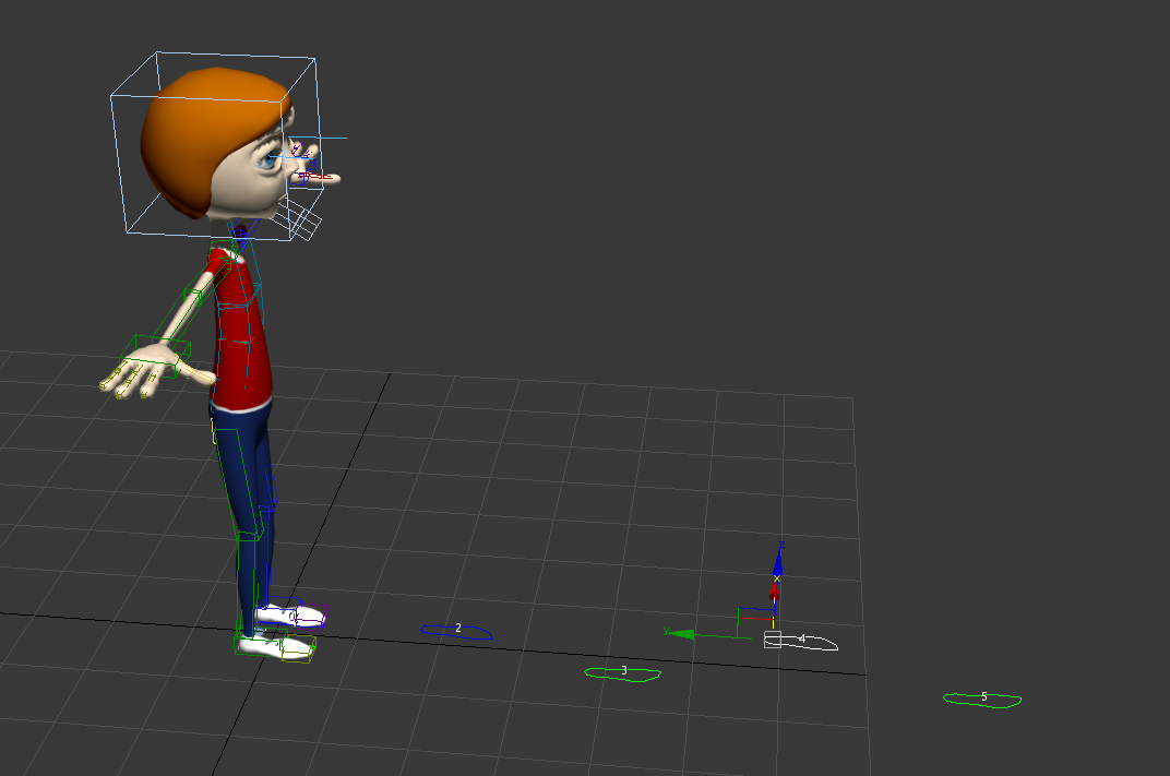 8. 注意:不能对足迹动画后进行自由关键帧的添加和设置。但可以将足迹动画转换成动作库进行保存。同样我们也可以将我们自己做的动作导出保存成动作库,以便日后在其他场景中使用。