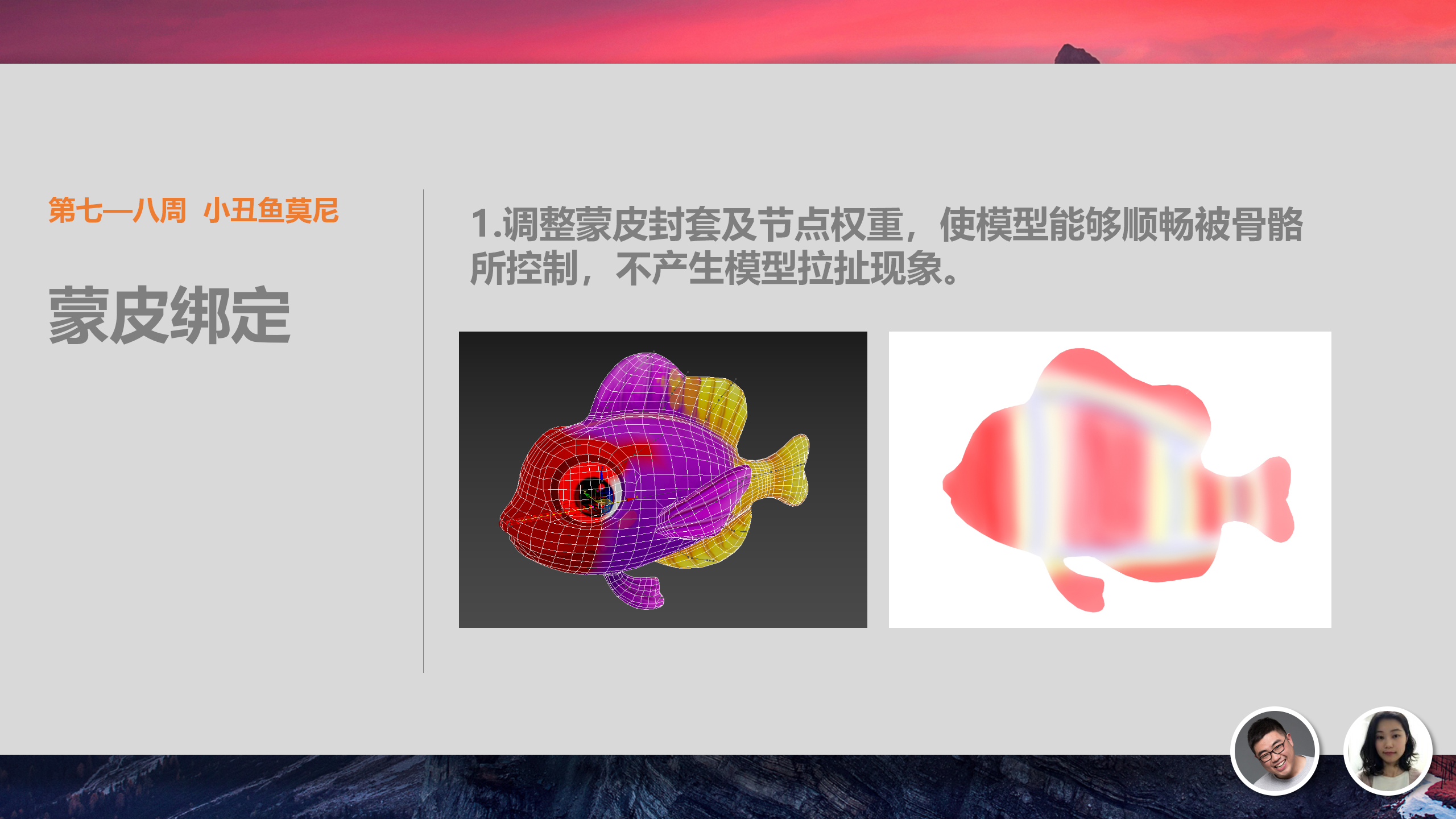 问题:如何进行小丑鱼的蒙皮调试