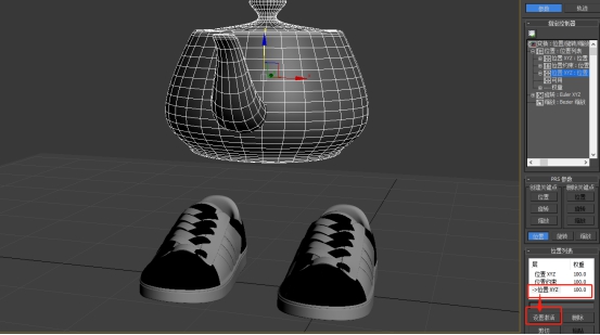 5. 在位置列表中选择“位置XYZ”,点击“设置激活”,然后选择茶壶进行位置的调整。
