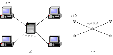 ④星型结构:星型结构是指各工作站以星型方式连接成网。网络有中央节点,其他节点(工作站、服务器)都与中央节点直接相连,这种结构以中央节点为中心,因此又称为集中式网络。