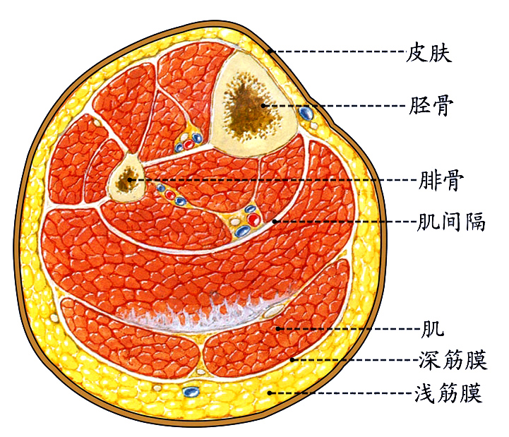 1.筋膜 分浅筋膜和深筋膜两种。①浅筋膜又称皮下筋膜,位于真皮之下,包被全身各部,由疏松结缔组织构成。内含浅动脉、皮下静脉、皮神经、淋巴管及脂肪等,②深筋膜又称固有筋膜,由致密结缔组织构成,位于浅筋膜的深面,它包被体壁、四肢的肌和血管、神经等。
