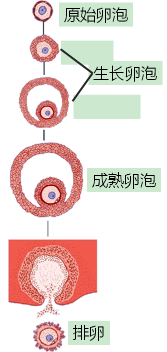 3)成熟卵泡:结构与晚期的生长卵泡相似,但体积更大,并向卵巢表面凸出。