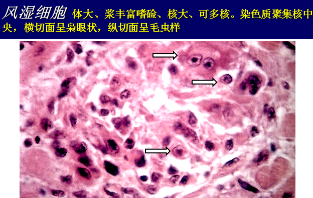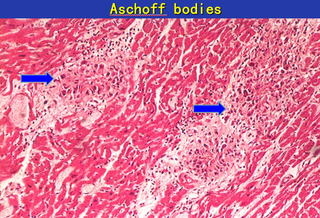 (2)风湿性心肌炎:以间质内小血管旁出现风湿性小体为特征。