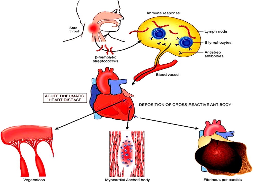 抗原抗体交叉反应学说:链球菌细胞壁的C抗原、M抗原的抗体分别与结缔组织和心肌、血管平滑肌起交叉反应。