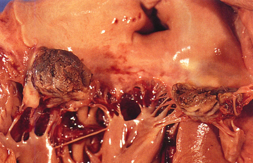 病变通常多发生于已有病变的瓣膜,最常侵犯二尖瓣及主动脉瓣。