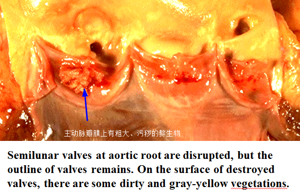 病变心瓣膜上(二尖瓣、主动脉瓣)形成赘生物;