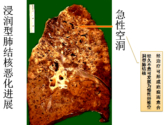 急性空洞:经适当治疗后,可形成瘢痕组织而愈合;经久不愈,则可发展为慢性纤维空洞型肺结核。
