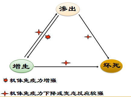 渗出、坏死和增生三种变化往往同时存在而以某一种改变为主,而且可以互相转化。