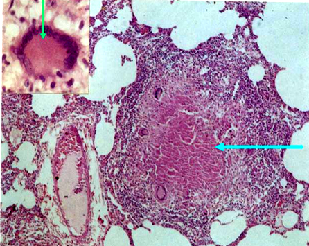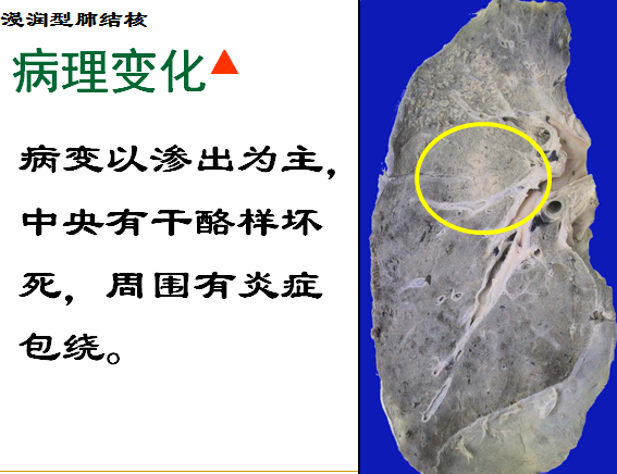 病变:以渗出为主,中央有干酪样坏死,病灶周围有炎症包绕。