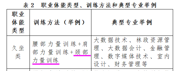 结合学生的专业和未来职业岗位的需要对职业体能相关训练内容与方法提出建议。提高学生与职业相关的身体素质及在不同劳动环境中的身体耐受力和适应能力。