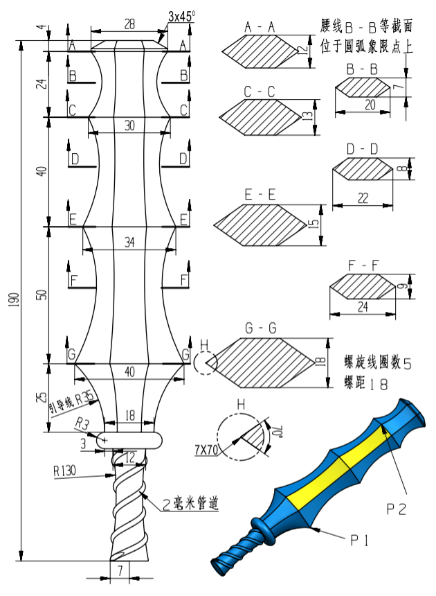 05案例三 金锏模型绘制(手柄螺纹绘制)