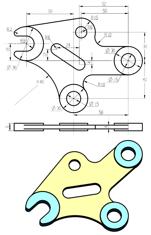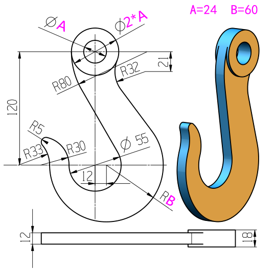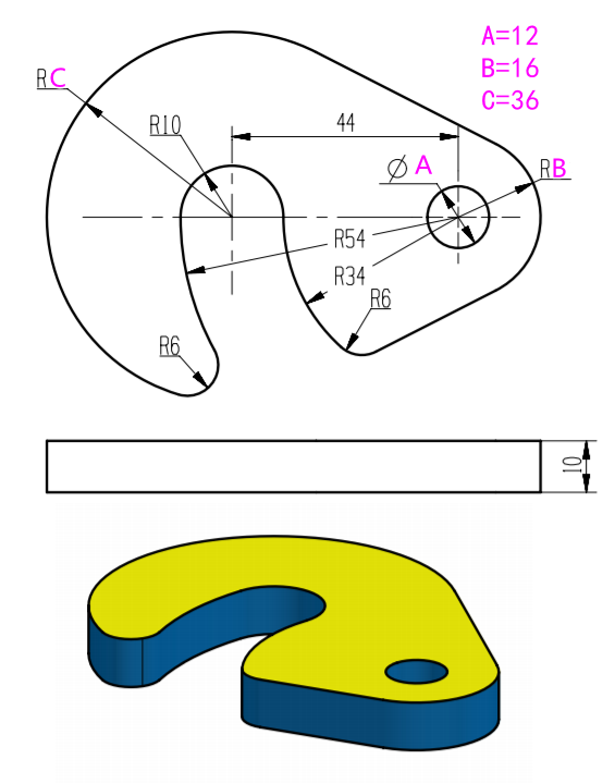 轮廓曲线 圆弧 倒圆角 尺寸约束 几何约束 对称拉伸 布尔运算