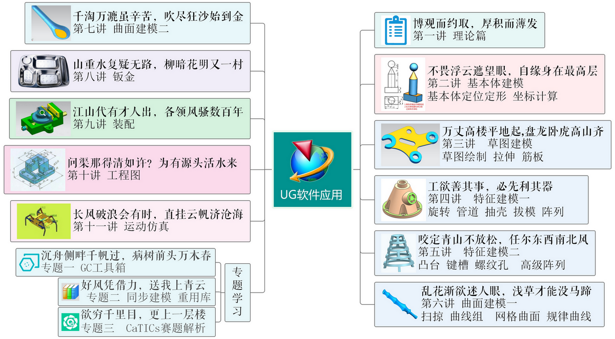课程案例主要来源于教材,CaTICS竞赛试题,三维CAD练习题,CAD/CAM职业技能考试等,部分图纸根据实际需要经过改造加工。