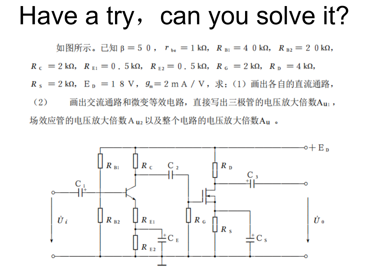 1个BJT,一个N沟道耗尽型MOSFET,级联例题