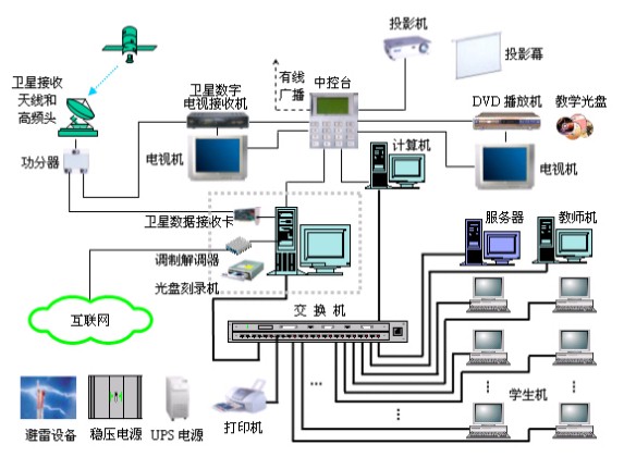 u可实现卫星教学资源收视、互联网接入和文件打印等功能,主要由以下部分构成: