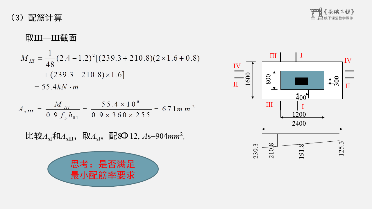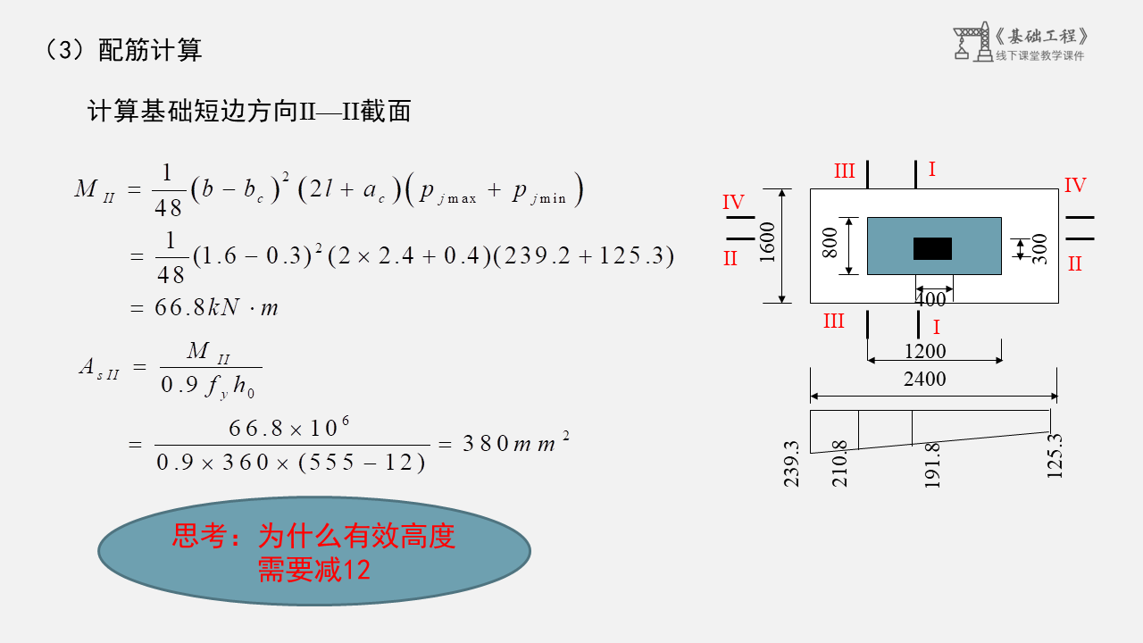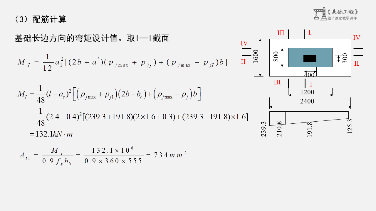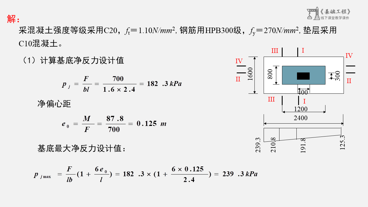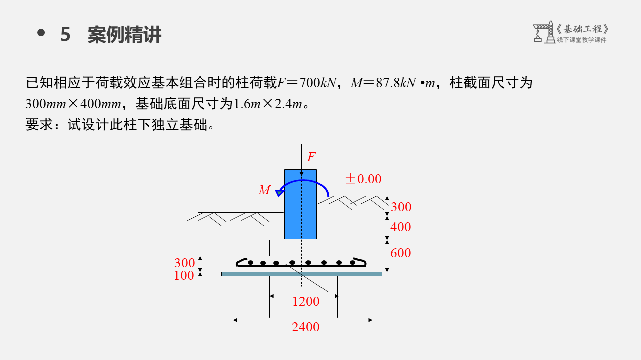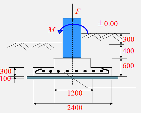 =87.8kN·m,基础底面尺寸为1600mm×2400mm,如图所示,试设计该基础。