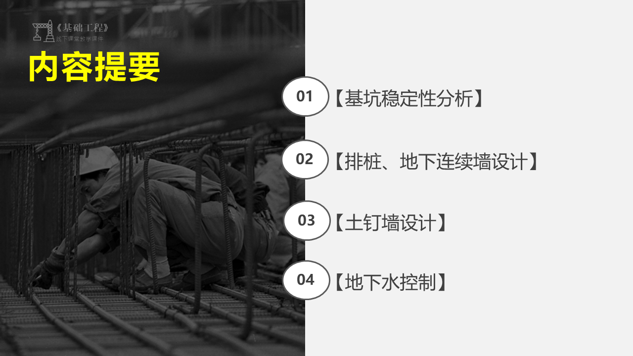 1、观看以上视频,思考怎样才能保证基坑工程的稳定?在工作中,我们应该保持什