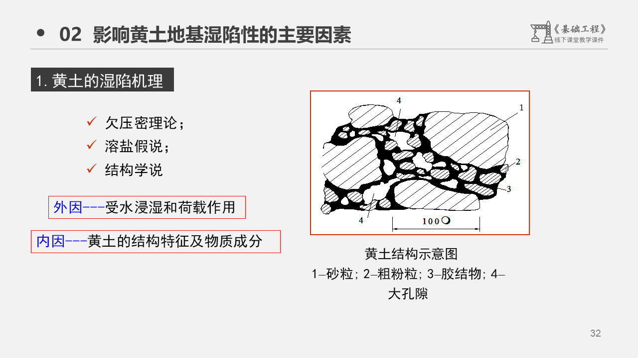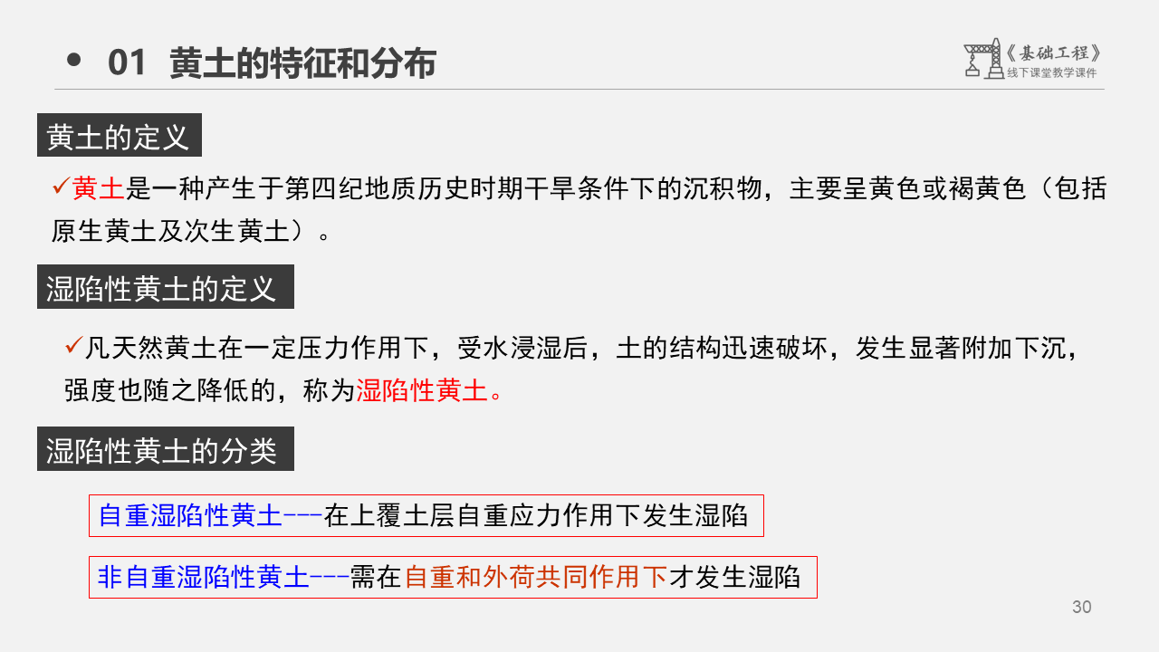 1、观看以上案例,在线讨论黄土的分布与特征,并讨论,为什么黄土会发生湿陷?除了黄土,还有没有哪些类土会发生湿陷?