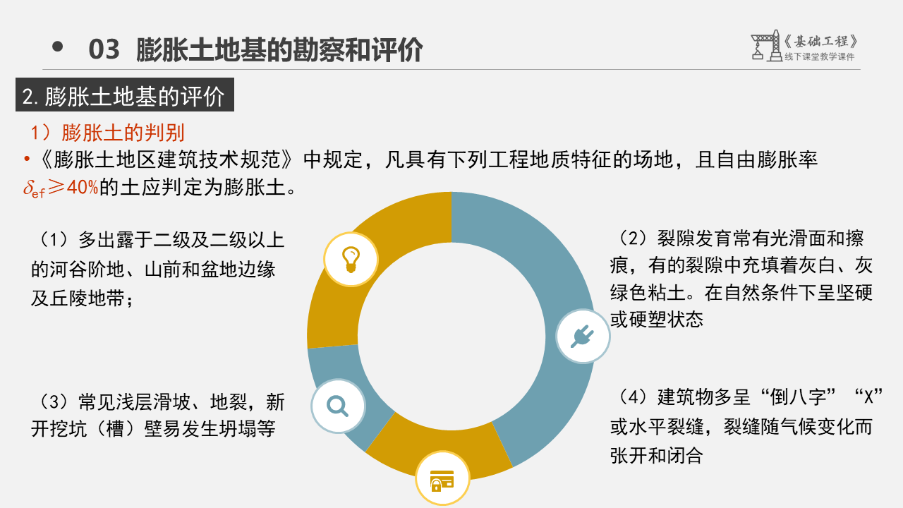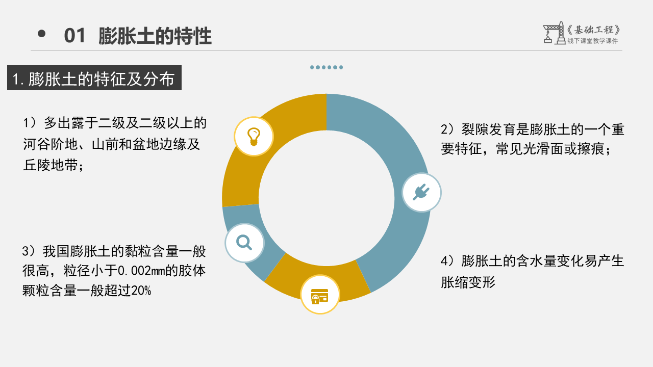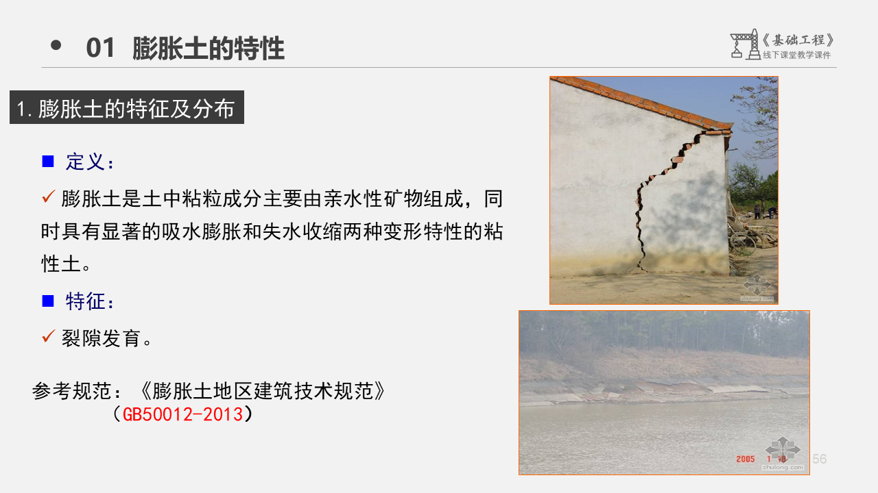1、观看以上视频,在线讨论膨胀土有什么特点,如果膨胀土作为建筑物的地基,会有