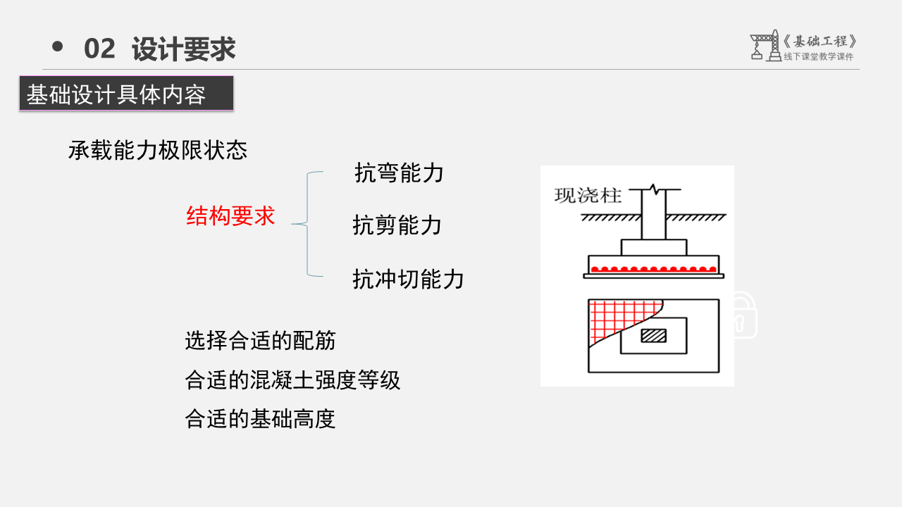 1.通过以上视频学习,回顾混凝土的知识,极限状态分为几类?分析此时基础达到了什么极限状态?讨论如何避免此种极限状态的出现?