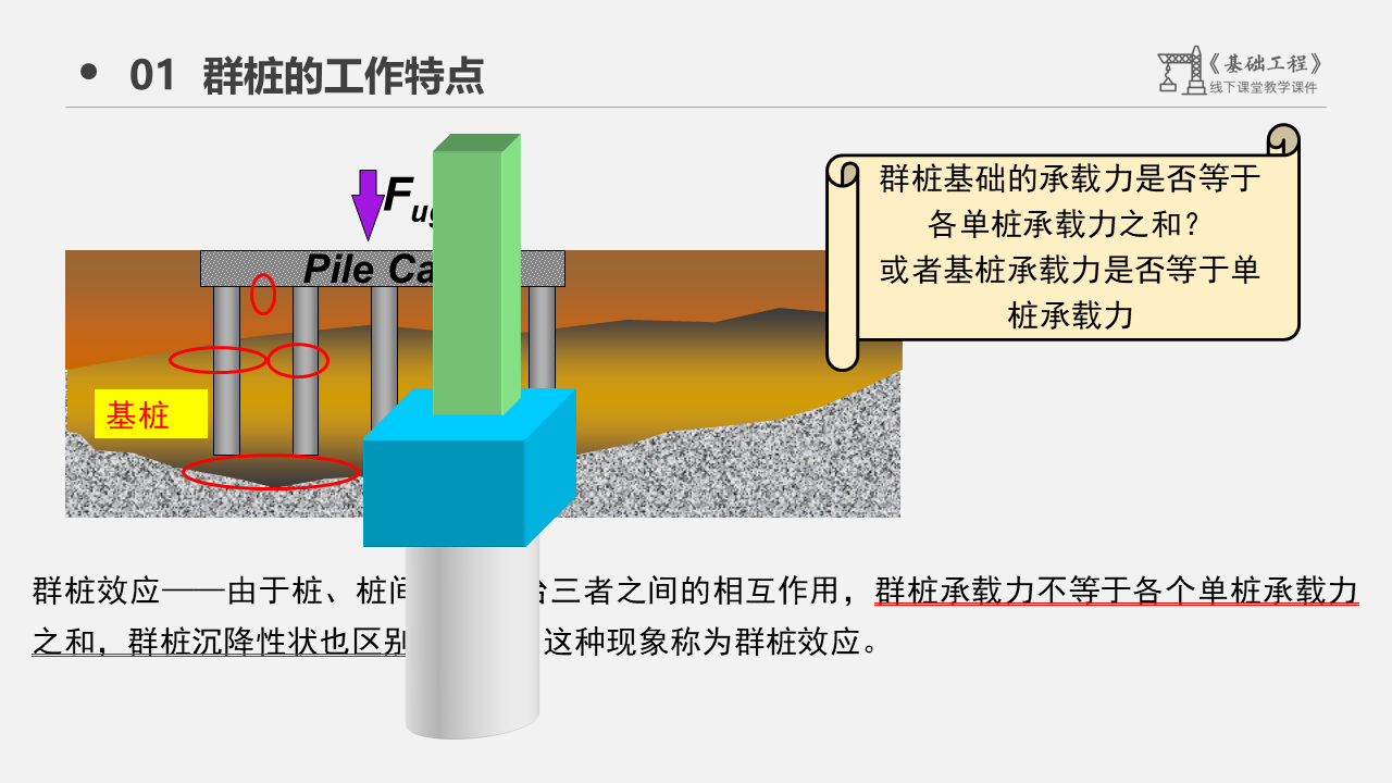 1、观看以上视频,联系上述图片,思考什么是群桩基础,在线讨论群桩与单桩有什么区别和联系?