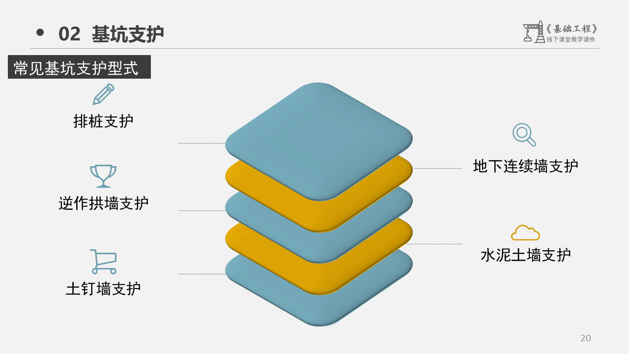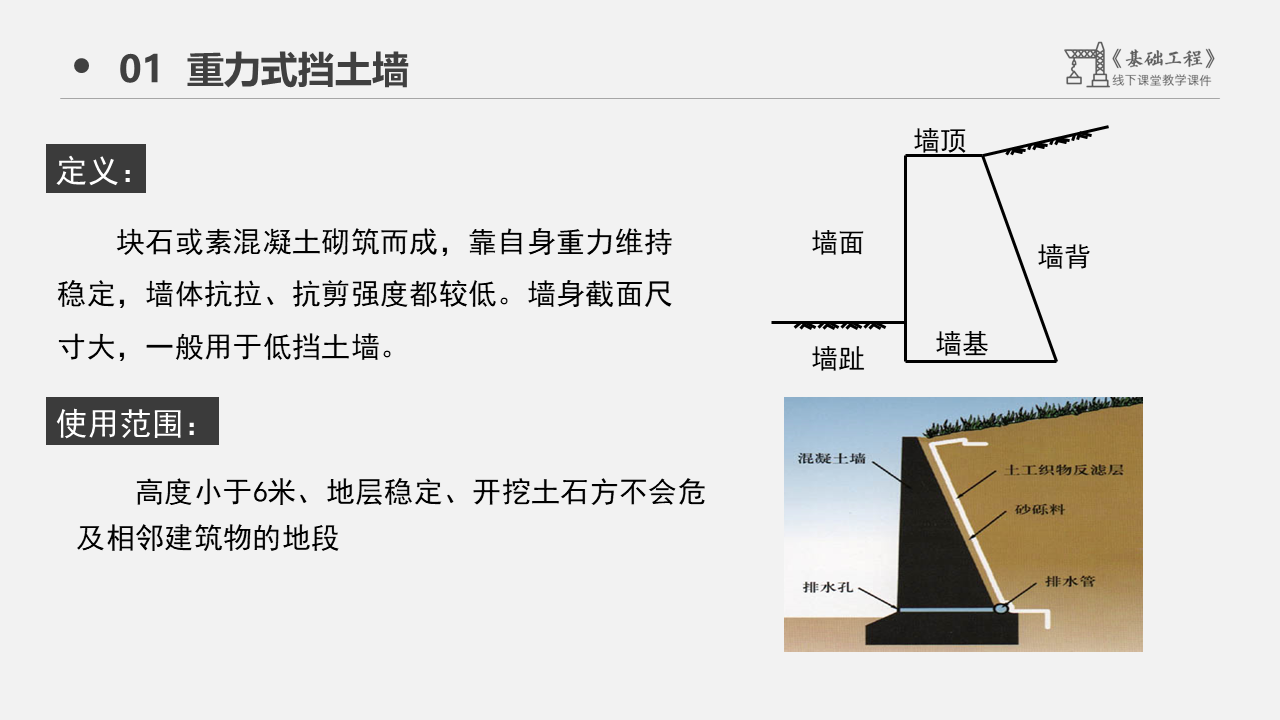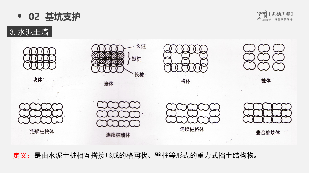 1、通过以上图片,了解什么是挡土墙,什么是基坑支护,挡土墙有哪些形式?基坑支护有哪些形式?