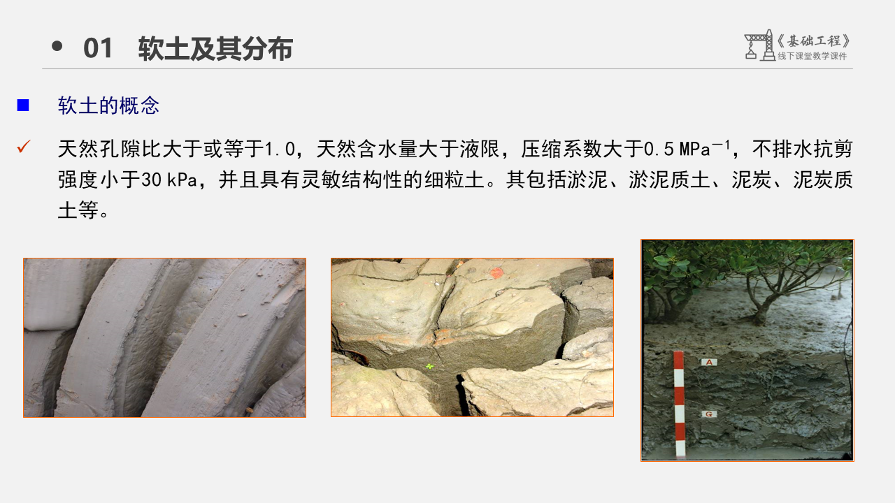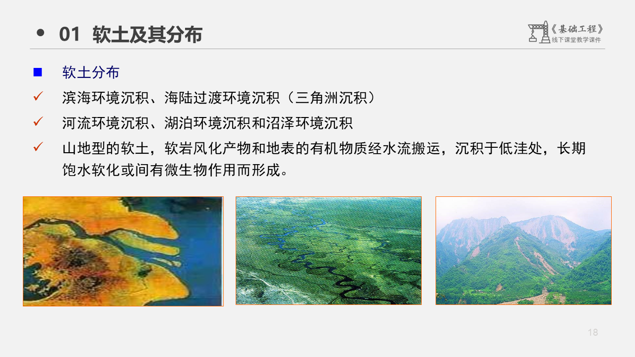 1、观看以上视频资料,在线讨论软土大致分布在哪里?软土有什么样的工程特点