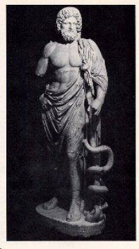 古希腊的医神---阿斯扣雷波(公元前400年),经常手持盘绕着灵蛇的神杖,云游四方治病救人,医术高明,为人善良。身后被奉为神明,至今仍有许多供奉他的神庙。