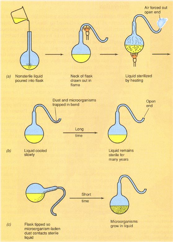 Lazzaro Spallanzani的实验:将装有肉汤的烧瓶完全封闭,便没有微生物生长, 但有人提出这是由于没有了空气。