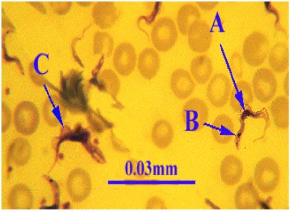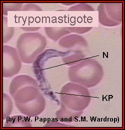 长约30微米的鞭毛虫,由一些吸血蝇类传播,引起“非洲睡眠病”等。