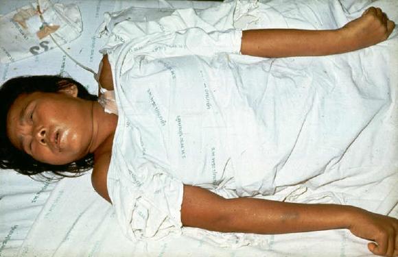 经食物感染,引起严重水性腹泻、厌食、恶心呕吐、肌痛等。
