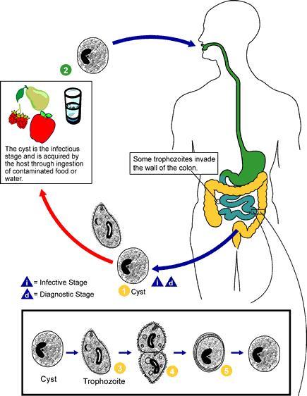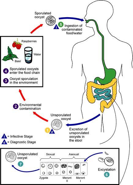 经食物感染, 无症状或长期腹泻。