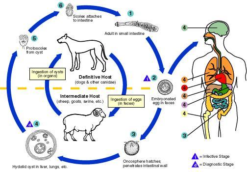 血吸虫病:由数种血吸虫引起,中间宿主(螺),人类接触疫水而染病,尾蚴穿透皮肤感染。在肝部繁殖,引起肝脾肿大;感染后发生消瘦、贫血、营养性水肿和腹水,而导致死亡。